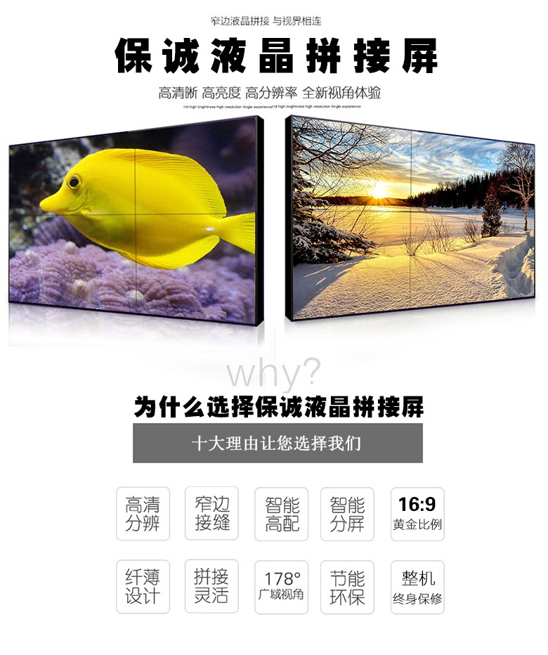 55寸液晶拼接屏采用LG工业级液晶显示面板,结合超窄边拼接技术、信号切换技术、无损远程传输技术、图像拼接处理技术综合应用组成一套功能多样化、控制智能化、操作先进化的液晶拼接显示系统,为客户展现出高亮度、高清晰度、无干扰的优质晶拼接画面。专业的防灼屏及散热技术,平均无故障运行时间(MTBF)达60000小时。完美的无缝拼接效果,能够最大程度地减少看者的视觉盲点与视觉割裂感,为您呈现浑然一体的恢弘视野和超清晰震撼的动态视觉体验.