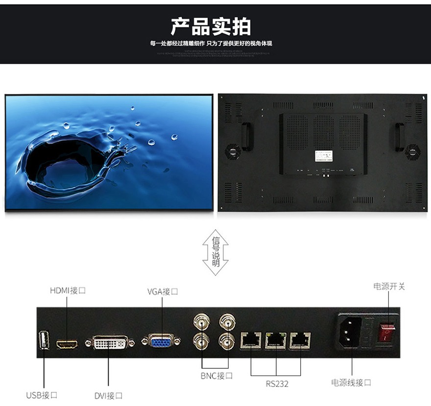 55寸超窄边液晶拼接屏采用韩国三星工业级DID液晶屏, 采用最先进的密集型LED光源背光系统,背光色彩还原度好,图像逼真,点状超密集分布,背光亮度均匀。采用高裕量的电子元器件,独有智能色彩校正技术,令色彩更加亮丽自然。采用先进的UV2A液晶晶体排布技术:亮场明亮、节能、超高光能效、暗场无漏光.超高对比度6ms响应速度,图像更流畅。具有节能、环保、无辐射,寿命长,长期使用亮度均匀,背光采用无玻璃材料、安全运输、面板外壳装材料坚固,不易破损。液晶显示单元采用目前最先进的背光技术,极大提升了拼接单元的整体显示效果,具有突出的技术特点。