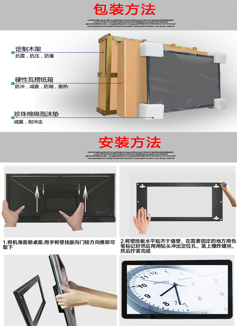 1、19寸壁挂式液晶广告机外壳采用4mm钢化玻璃,铝合金边框,表面拉丝并阳极氧化处理,冷轧钢板后壳,主动散热;
