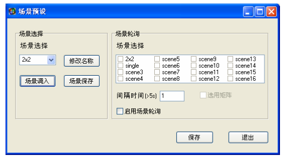 7、场景预设 场景预设见图 6 支持 16 种场景模式保存,可以更改模式名称。选择要保存的模式,设置完成 后点击“保存模式”。“调用模式”可以调用用户保存过的模式、跟据有需求用户 的还可以启用场景轮询模式8、系统设置