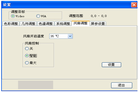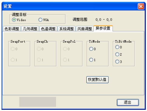 风扇运行模式:关—风扇不运行;智能—风扇到达设置温度后,自动打开,自动 调整转速;最大—风扇不受设置温度控制,处于常开状态。 风扇开启温度:选择合适的温度,和风扇运行模式,点击设置后生效 (注:任何情况都选择智能) 8)、屏参设置: